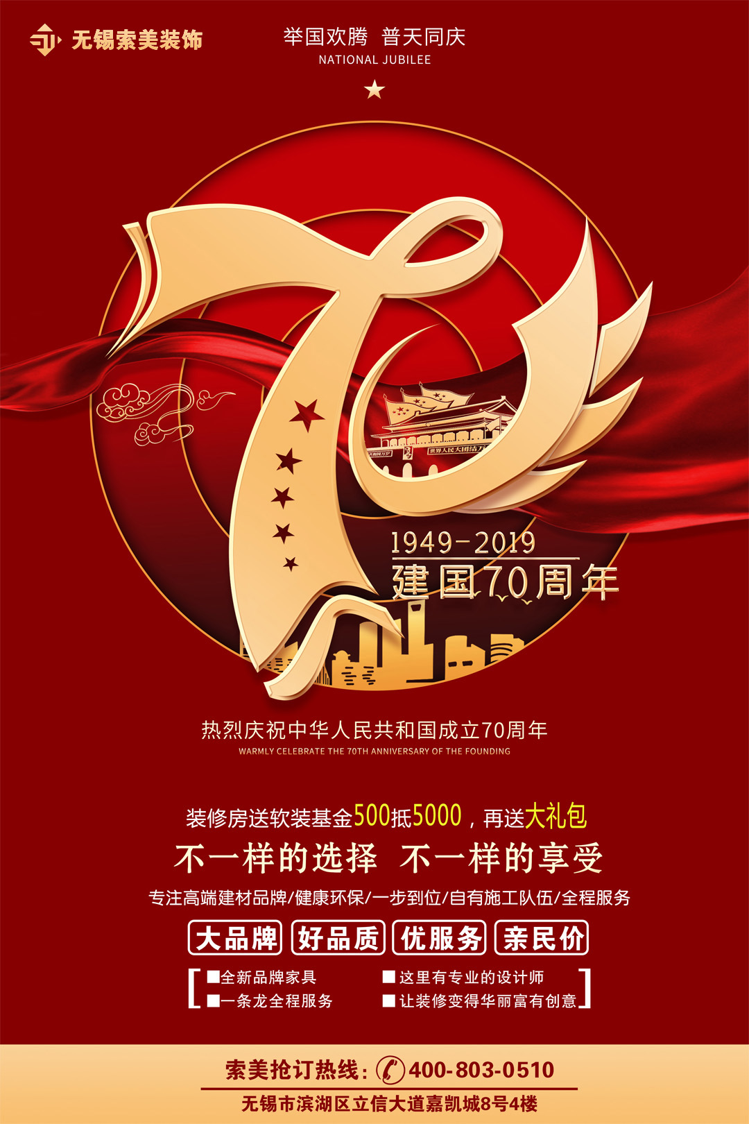 慶祝建國(guó)70周年 裝修房送軟裝基金 500抵5000